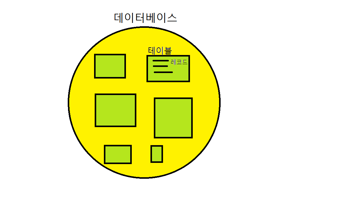 - 아래의 그림처럼 1개의 데이터베이스에는 구조가 다른 테이블들이 여러 개 존재/생성/삭제될 수 있고 각 테이블 내의 저장된 데이터가 레코드입니다.